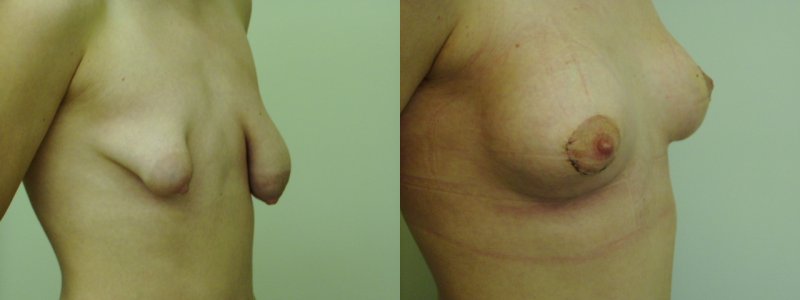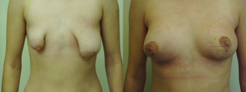 I takto dramatická asymetrie prsou má řešení. Doktor Jiří Paděra zvolil kombinaci modelace prsou s použitím rozdílných velikostí implantátů.